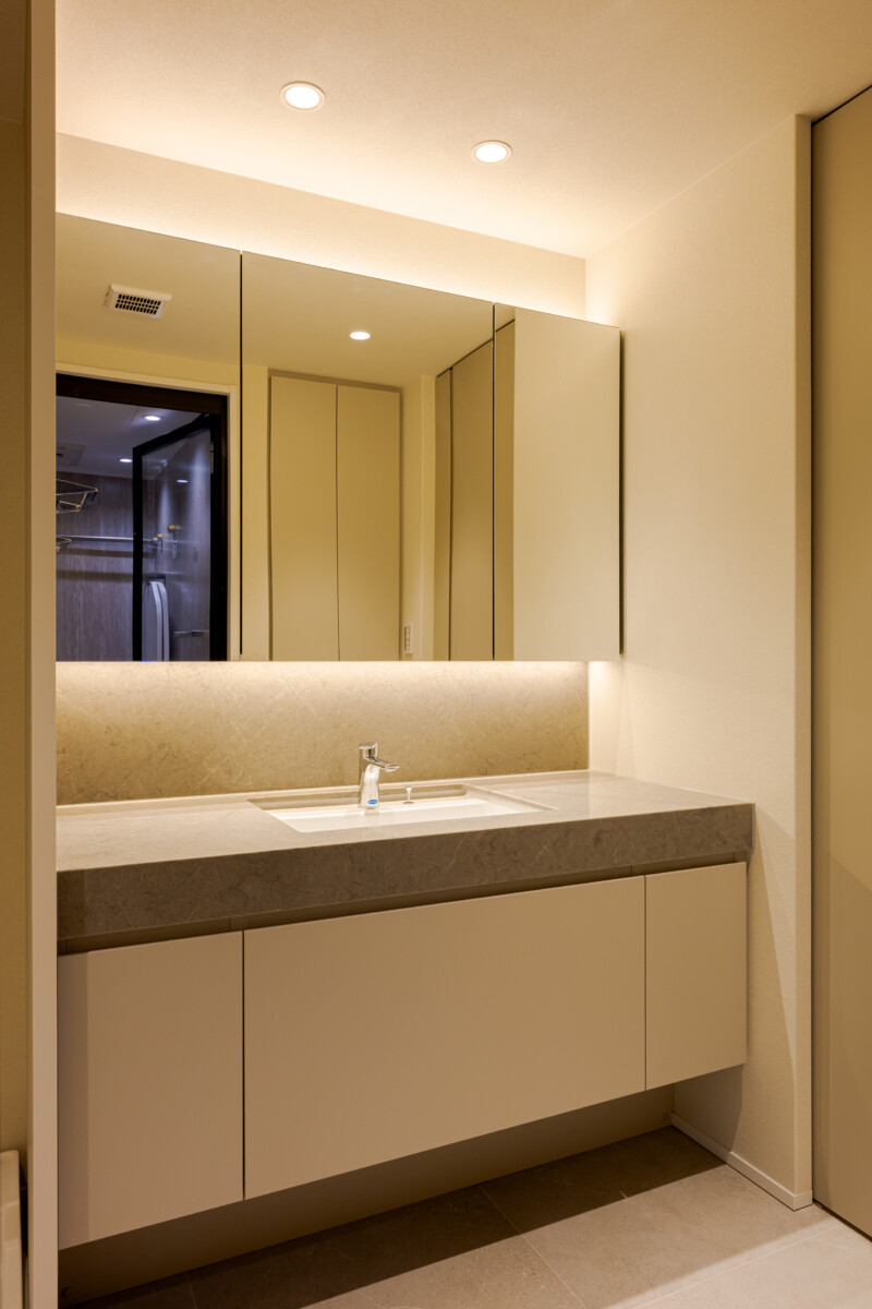・3面鏡付洗面化粧台新規交換